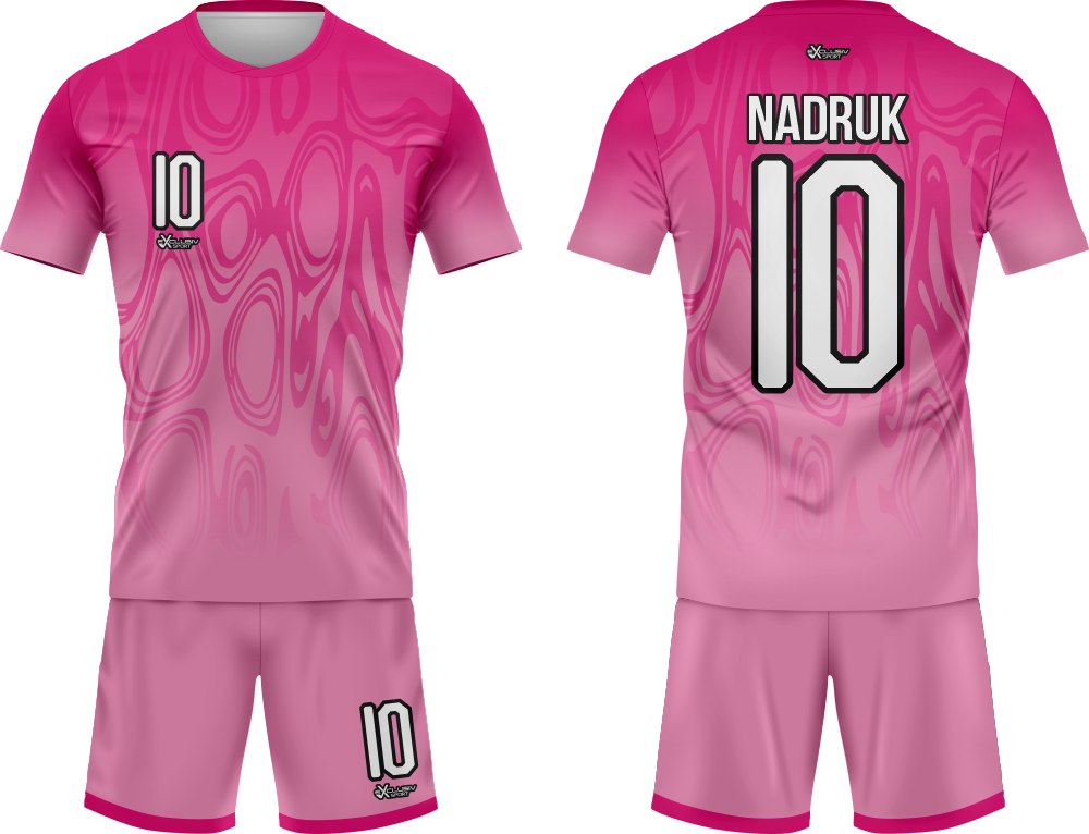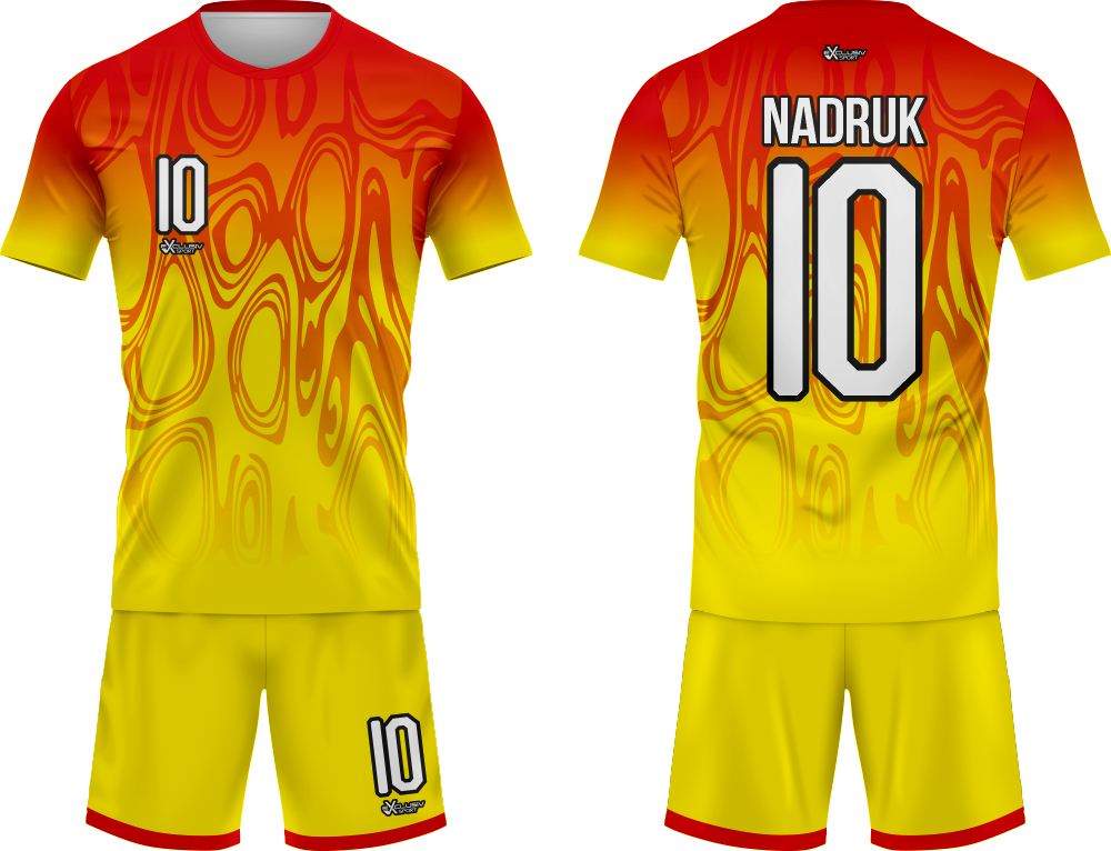 W naszych strojach wykorzystujemy druk sublimacyjny wykorzystujemy do tego tusz sublimacyjny, który nakłada się na papier do sublimacji , a następnie nadruk jest przenoszony z papieru na materiał za pomocą specjalnej prasy. Do tego procesu niezbędna jest wysoka temperatura, która pozwala na podgrzanie barwnika – zmienia on wtedy stan skupienia ze stałego na gazowy i wtedy przenika włókna poliestrowego materiału najlepszej jakości do produkcji strojów. Po przeniknięciu całego nadruku na materiał obniża się temperaturę, a włókna z przyjętym tuszem się zamykają. W ten sposób nadruk jest „wdrukowany” w materiał, a nie tylko naniesiony na jego powierzchnię. Dzięki temu jest niewyczuwalny, a także bardzo trwały – bez problemu zniesie wiele prań, co jest szczególnie ważne przy odzieży sportowej, która często trafia do pralki.