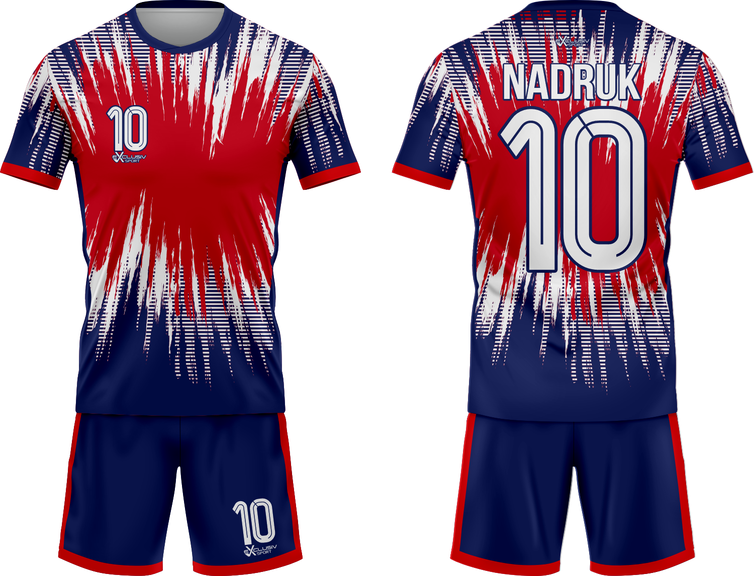 Nasze komplety możesz dowolnie personalizować i nie wpłynie to na końcową cenę, możesz dodać logo drużyny, sponsora ,dodatkowy nadruk. Jeżeli żaden z przedstawionych przez nas wzorów dostępnych na stronie nie spełnia twoich oczekiwań możemy zaprojektować coś specjalnie dla Ciebie wystarczy że wyślesz do nas maila .Przedstawiona niżej personalizacja jest tylko przykładowa nadruki i loga mogą być w dowolnym miejscu na stroju.