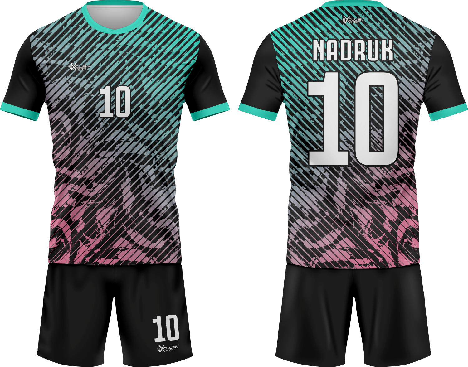 Nasze komplety możesz dowolnie personalizować i nie wpłynie to na końcową cenę, możesz dodać logo drużyny, sponsora ,dodatkowy nadruk. Jeżeli żaden z przedstawionych przez nas wzorów dostępnych na stronie nie spełnia twoich oczekiwań możemy zaprojektować coś specjalnie dla Ciebie wystarczy że wyślesz do nas maila .Przedstawiona niżej personalizacja jest tylko przykładowa nadruki i loga mogą być w dowolnym miejscu na stroju.