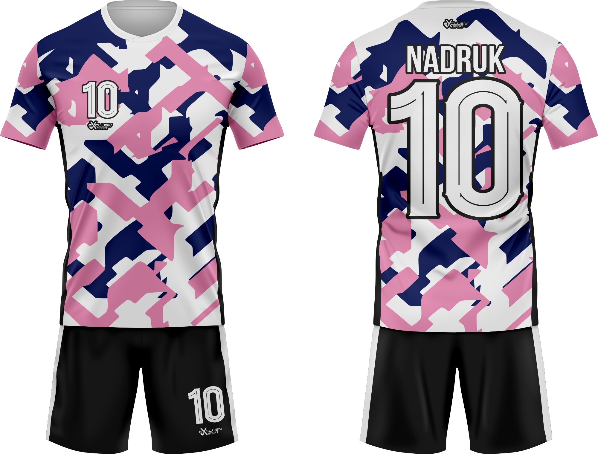 Nasze komplety możesz dowolnie personalizować i nie wpłynie to na końcową cenę, możesz dodać logo drużyny, sponsora ,dodatkowy nadruk. Jeżeli żaden z przedstawionych przez nas wzorów dostępnych na stronie nie spełnia twoich oczekiwań możemy zaprojektować coś specjalnie dla Ciebie wystarczy że wyślesz do nas maila .Przedstawiona niżej personalizacja jest tylko przykładowa nadruki i loga mogą być w dowolnym miejscu na stroju.