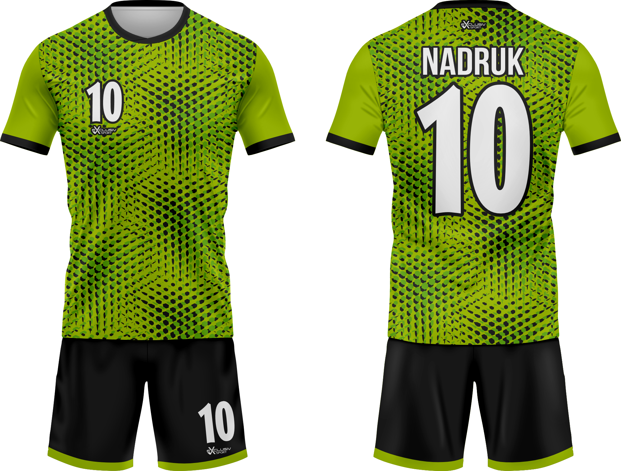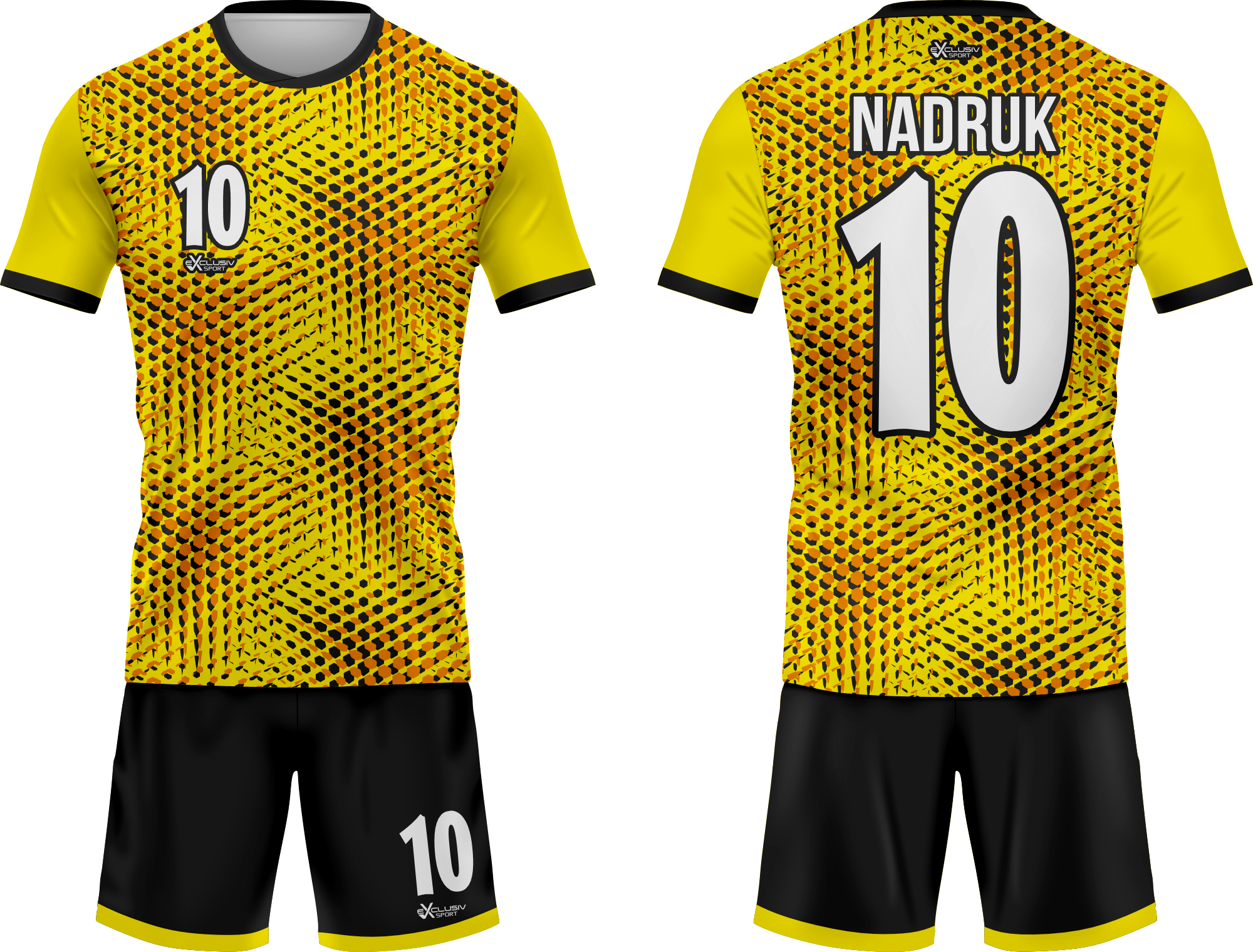 Nasze komplety możesz dowolnie personalizować i nie wpłynie to na końcową cenę, możesz dodać logo drużyny, sponsora ,dodatkowy nadruk. Jeżeli żaden z przedstawionych przez nas wzorów dostępnych na stronie nie spełnia twoich oczekiwań możemy zaprojektować coś specjalnie dla Ciebie wystarczy że wyślesz do nas maila .Przedstawiona niżej personalizacja jest tylko przykładowa nadruki i loga mogą być w dowolnym miejscu na stroju.