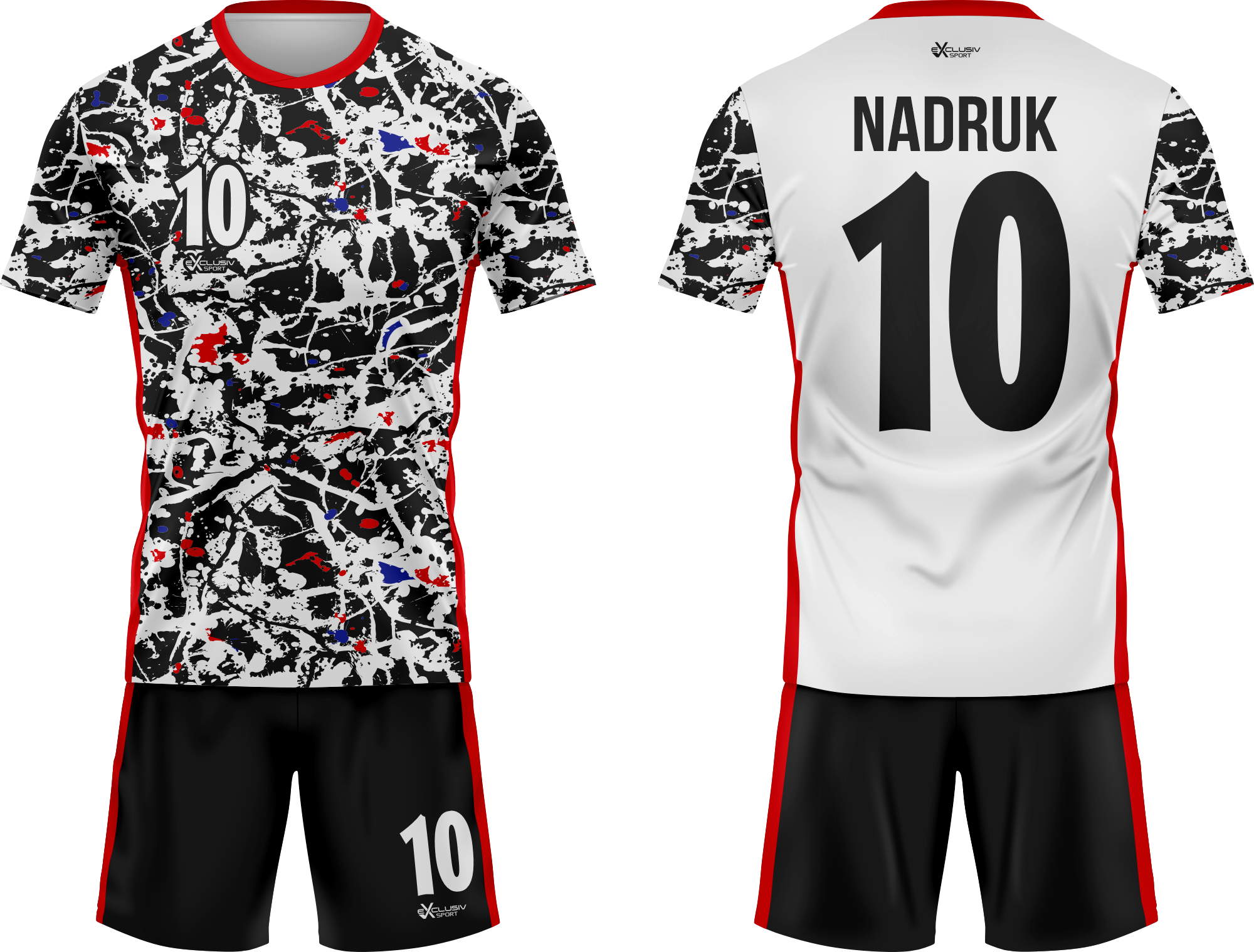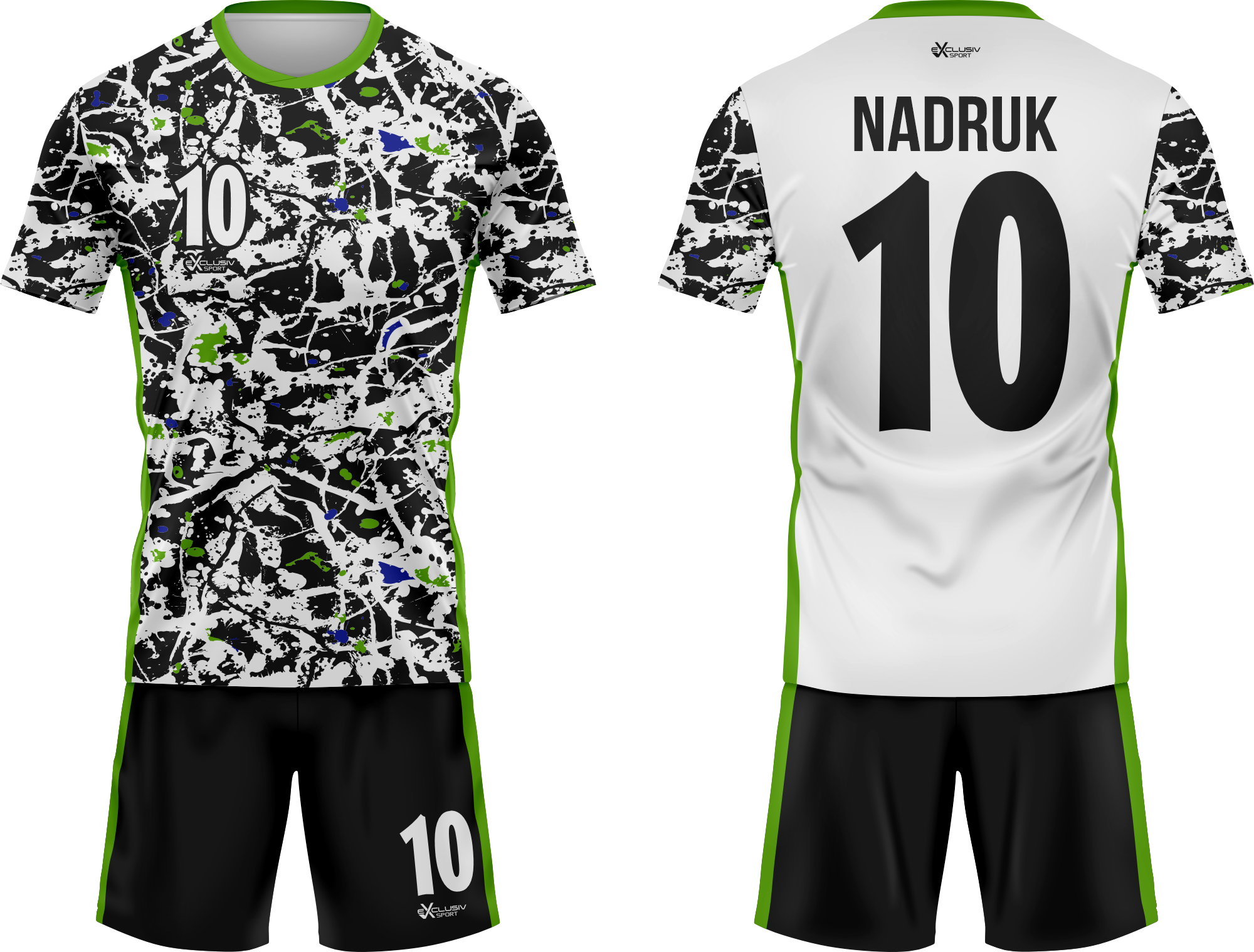 Nasze komplety możesz dowolnie personalizować i nie wpłynie to na końcową cenę, możesz dodać logo drużyny, sponsora ,dodatkowy nadruk. Jeżeli żaden z przedstawionych przez nas wzorów dostępnych na stronie nie spełnia twoich oczekiwań możemy zaprojektować coś specjalnie dla Ciebie wystarczy że wyślesz do nas maila .Przedstawiona niżej personalizacja jest tylko przykładowa nadruki i loga mogą być w dowolnym miejscu na stroju.