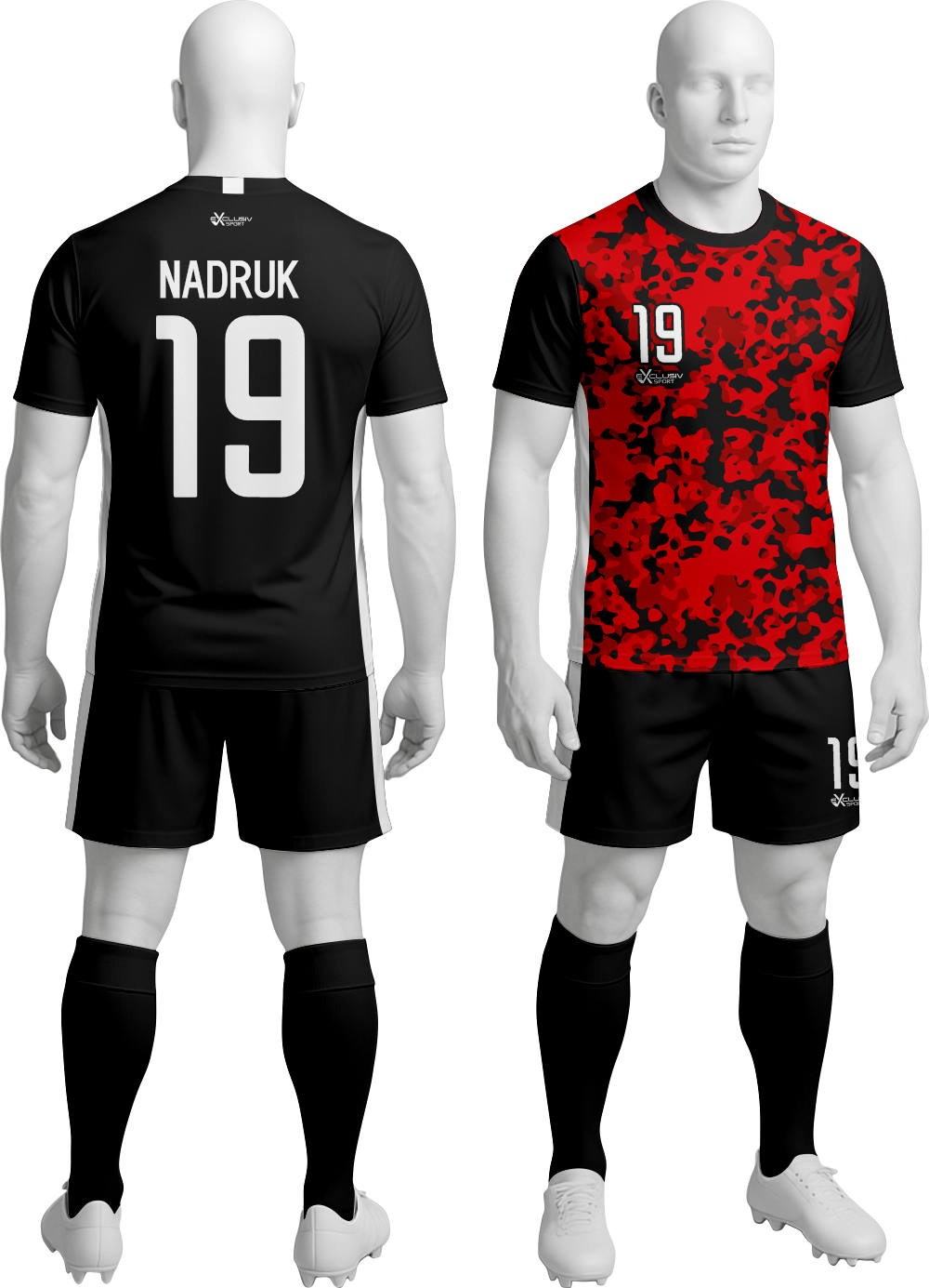 Nasze komplety możesz dowolnie personalizować i nie wpłynie to na końcową cenę, możesz dodać logo drużyny, sponsora ,dodatkowy nadruk. Jeżeli żaden z przedstawionych przez nas wzorów dostępnych na stronie nie spełnia twoich oczekiwań możemy zaprojektować coś specjalnie dla Ciebie wystarczy że wyślesz do nas maila .Przedstawiona niżej personalizacja jest tylko przykładowa nadruki i loga mogą być w dowolnym miejscu na stroju.