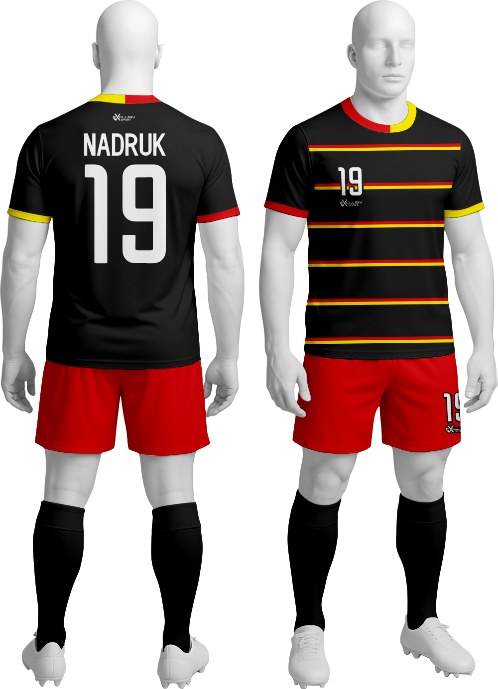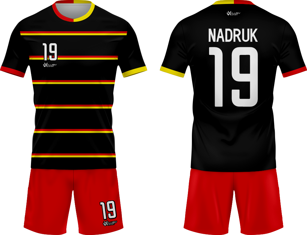 Nasze komplety możesz dowolnie personalizować i nie wpłynie to na końcową cenę, możesz dodać logo drużyny, sponsora ,dodatkowy nadruk. Jeżeli żaden z przedstawionych przez nas wzorów dostępnych na stronie nie spełnia twoich oczekiwań możemy zaprojektować coś specjalnie dla Ciebie wystarczy że wyślesz do nas maila .Przedstawiona niżej personalizacja jest tylko przykładowa nadruki i loga mogą być w dowolnym miejscu na stroju.