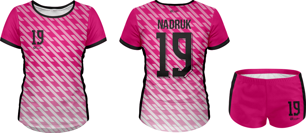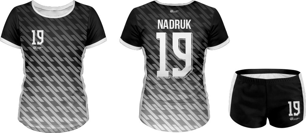 W naszych strojach wykorzystujemy druk sublimacyjny wykorzystujemy do tego tusz sublimacyjny, który nakłada się na papier do sublimacji , a następnie nadruk jest przenoszony z papieru na materiał za pomocą specjalnej prasy. Do tego procesu niezbędna jest wysoka temperatura, która pozwala na podgrzanie barwnika – zmienia on wtedy stan skupienia ze stałego na gazowy i wtedy przenika włókna poliestrowego materiału najlepszej jakości do produkcji strojów. Po przeniknięciu całego nadruku na materiał obniża się temperaturę, a włókna z przyjętym tuszem się zamykają. W ten sposób nadruk jest „wdrukowany” w materiał, a nie tylko naniesiony na jego powierzchnię. Dzięki temu jest niewyczuwalny, a także bardzo trwały – bez problemu zniesie wiele prań, co jest szczególnie ważne przy odzieży sportowej, która często trafia do pralki.