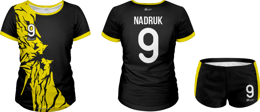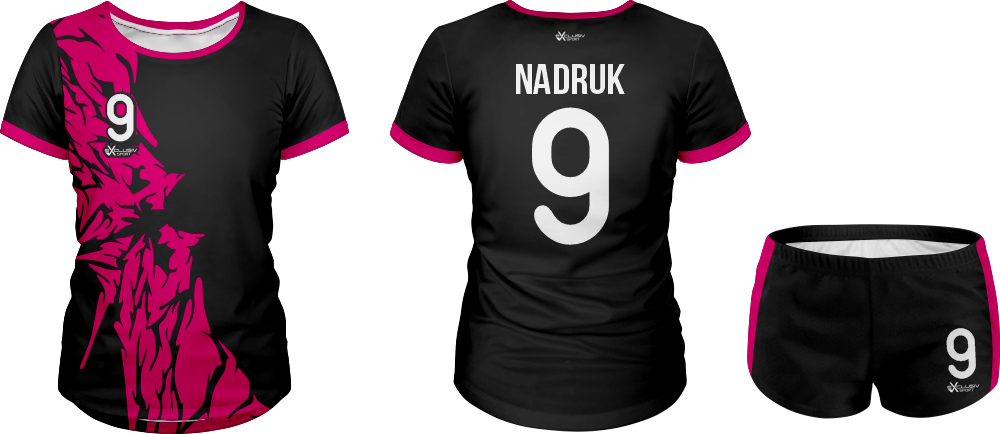 W naszych strojach wykorzystujemy druk sublimacyjny wykorzystujemy do tego tusz sublimacyjny, który nakłada się na papier do sublimacji , a następnie nadruk jest przenoszony z papieru na materiał za pomocą specjalnej prasy. Do tego procesu niezbędna jest wysoka temperatura, która pozwala na podgrzanie barwnika – zmienia on wtedy stan skupienia ze stałego na gazowy i wtedy przenika włókna poliestrowego materiału najlepszej jakości do produkcji strojów. Po przeniknięciu całego nadruku na materiał obniża się temperaturę, a włókna z przyjętym tuszem się zamykają. W ten sposób nadruk jest „wdrukowany” w materiał, a nie tylko naniesiony na jego powierzchnię. Dzięki temu jest niewyczuwalny, a także bardzo trwały – bez problemu zniesie wiele prań, co jest szczególnie ważne przy odzieży sportowej, która często trafia do pralki.