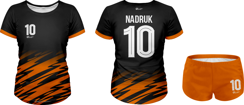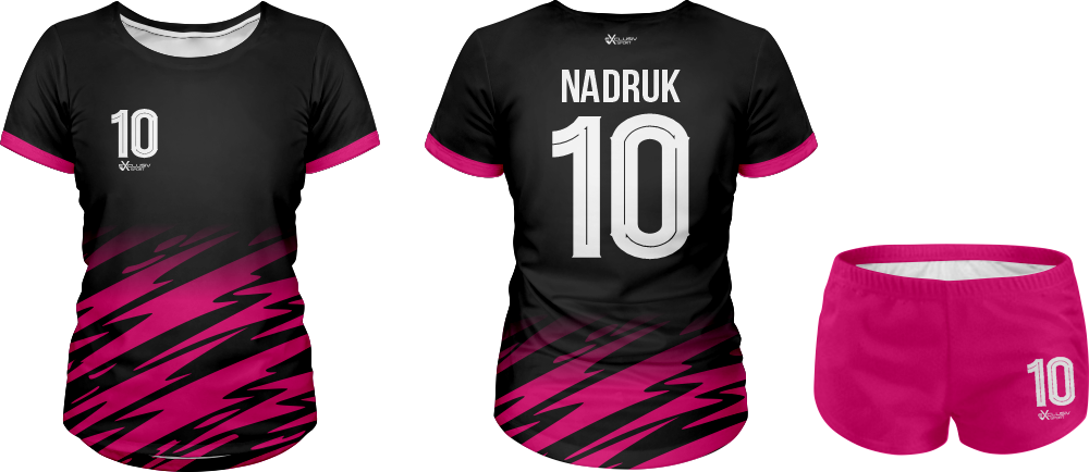 W naszych strojach wykorzystujemy druk sublimacyjny wykorzystujemy do tego tusz sublimacyjny, który nakłada się na papier do sublimacji , a następnie nadruk jest przenoszony z papieru na materiał za pomocą specjalnej prasy. Do tego procesu niezbędna jest wysoka temperatura, która pozwala na podgrzanie barwnika – zmienia on wtedy stan skupienia ze stałego na gazowy i wtedy przenika włókna poliestrowego materiału najlepszej jakości do produkcji strojów. Po przeniknięciu całego nadruku na materiał obniża się temperaturę, a włókna z przyjętym tuszem się zamykają. W ten sposób nadruk jest „wdrukowany” w materiał, a nie tylko naniesiony na jego powierzchnię. Dzięki temu jest niewyczuwalny, a także bardzo trwały – bez problemu zniesie wiele prań, co jest szczególnie ważne przy odzieży sportowej, która często trafia do pralki.