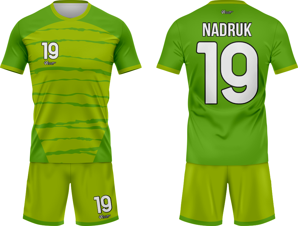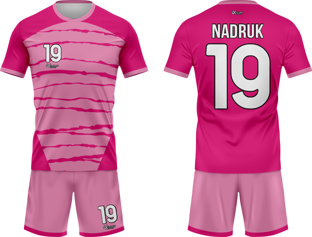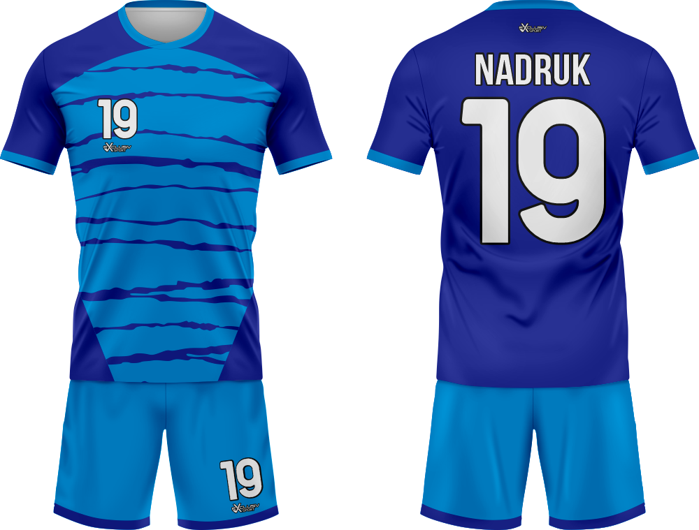 Nasze komplety możesz dowolnie personalizować i nie wpłynie to na końcową cenę, możesz dodać logo drużyny, sponsora ,dodatkowy nadruk. Jeżeli żaden z przedstawionych przez nas wzorów dostępnych na stronie nie spełnia twoich oczekiwań możemy zaprojektować coś specjalnie dla Ciebie wystarczy że wyślesz do nas maila .Przedstawiona niżej personalizacja jest tylko przykładowa nadruki i loga mogą być w dowolnym miejscu na stroju.