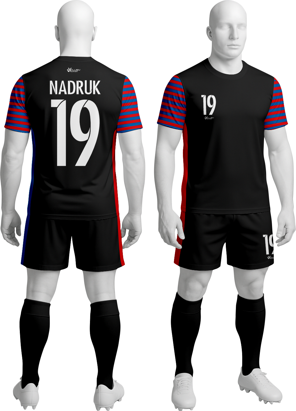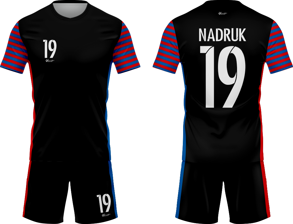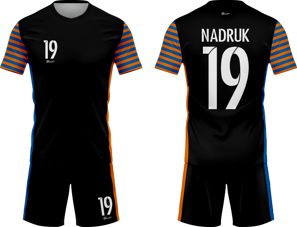 Nasze komplety możesz dowolnie personalizować i nie wpłynie to na końcową cenę, możesz dodać logo drużyny, sponsora ,dodatkowy nadruk. Jeżeli żaden z przedstawionych przez nas wzorów dostępnych na stronie nie spełnia twoich oczekiwań możemy zaprojektować coś specjalnie dla Ciebie wystarczy że wyślesz do nas maila .Przedstawiona niżej personalizacja jest tylko przykładowa nadruki i loga mogą być w dowolnym miejscu na stroju.