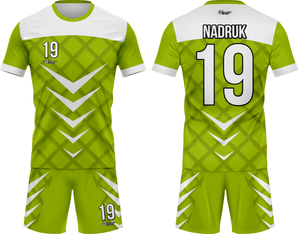 Nasze komplety możesz dowolnie personalizować i nie wpłynie to na końcową cenę, możesz dodać logo drużyny, sponsora ,dodatkowy nadruk. Jeżeli żaden z przedstawionych przez nas wzorów dostępnych na stronie nie spełnia twoich oczekiwań możemy zaprojektować coś specjalnie dla Ciebie wystarczy że wyślesz do nas maila .Przedstawiona niżej personalizacja jest tylko przykładowa nadruki i loga mogą być w dowolnym miejscu na stroju.