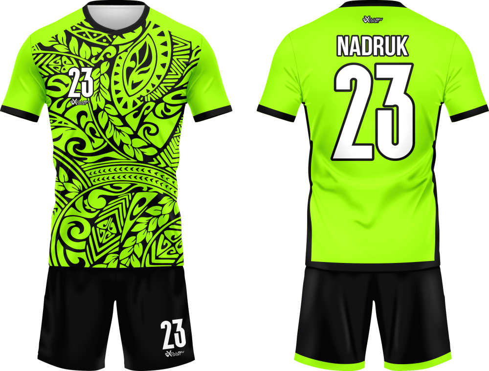 Nasze komplety możesz dowolnie personalizować i nie wpłynie to na końcową cenę, możesz dodać logo drużyny, sponsora ,dodatkowy nadruk. Jeżeli żaden z przedstawionych przez nas wzorów dostępnych na stronie nie spełnia twoich oczekiwań możemy zaprojektować coś specjalnie dla Ciebie wystarczy że wyślesz do nas maila .Przedstawiona niżej personalizacja jest tylko przykładowa nadruki i loga mogą być w dowolnym miejscu na stroju.
