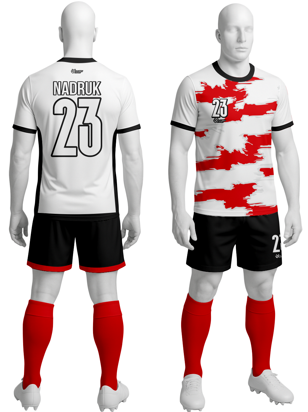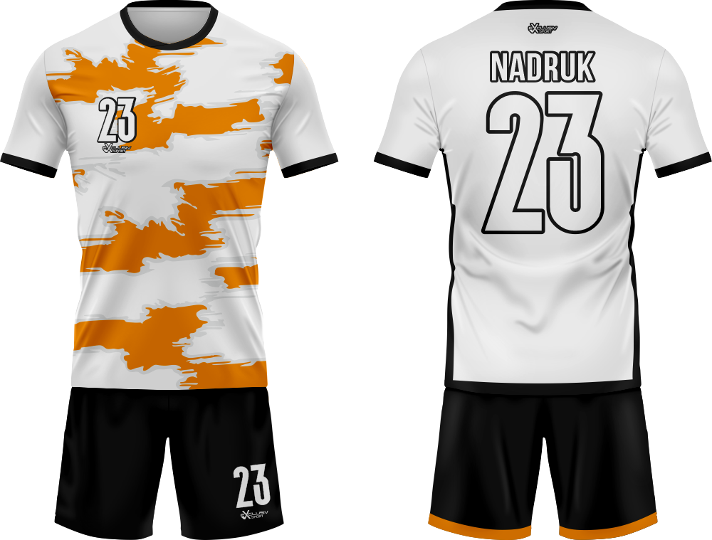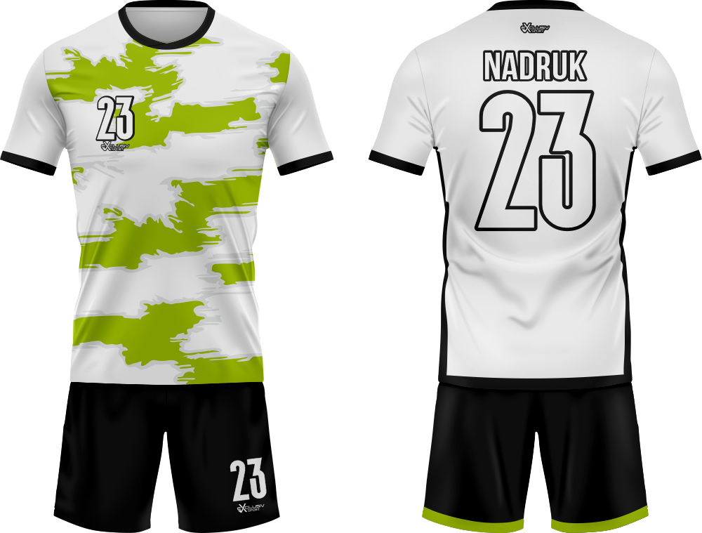 Nasze komplety możesz dowolnie personalizować i nie wpłynie to na końcową cenę, możesz dodać logo drużyny, sponsora ,dodatkowy nadruk. Jeżeli żaden z przedstawionych przez nas wzorów dostępnych na stronie nie spełnia twoich oczekiwań możemy zaprojektować coś specjalnie dla Ciebie wystarczy że wyślesz do nas maila .Przedstawiona niżej personalizacja jest tylko przykładowa nadruki i loga mogą być w dowolnym miejscu na stroju.